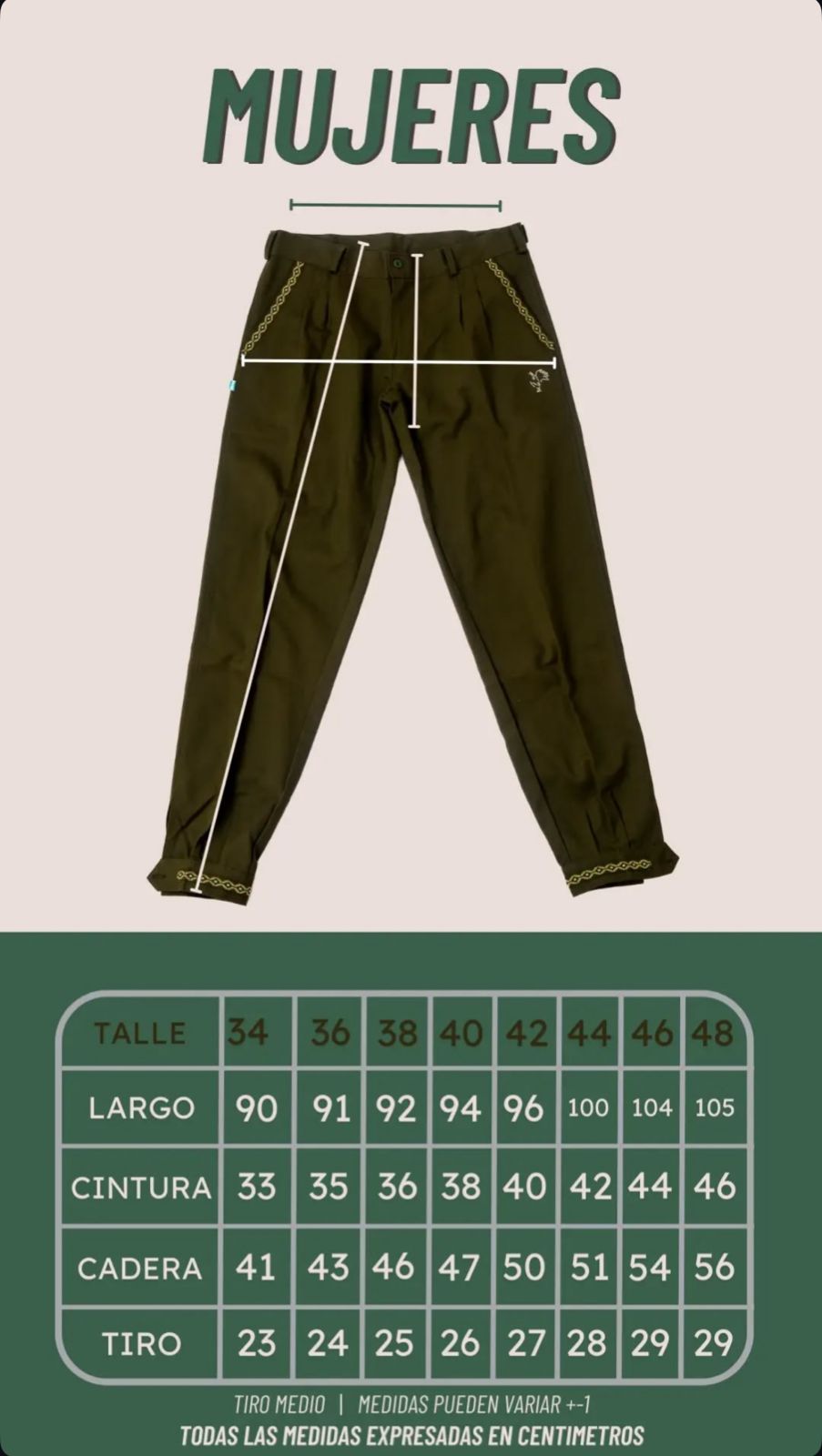 Bombacha de campo de mujer en gabardina beige, corte tiro medio.
